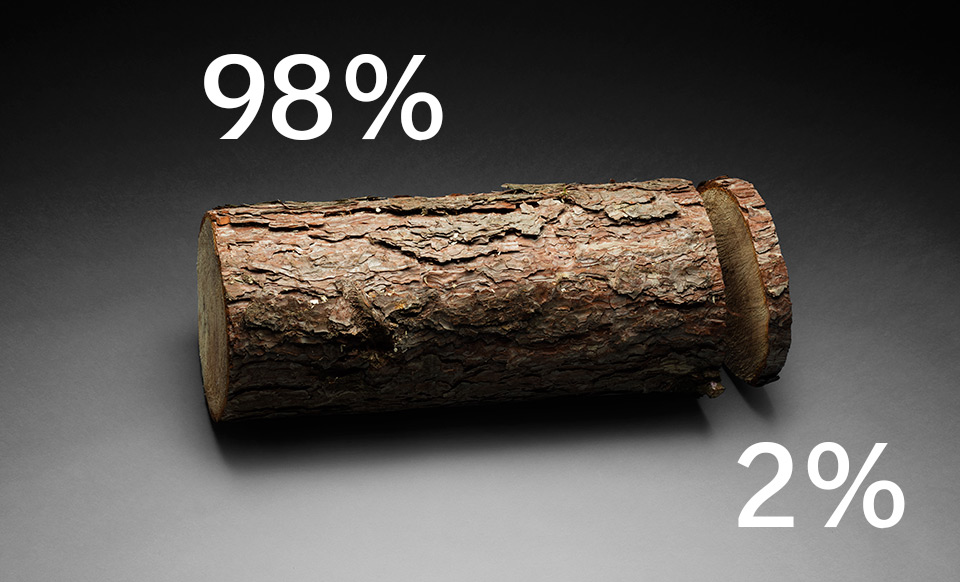 The remaining 2% of wood is sourced as “controlled” wood according to FSC. This means that the origin of the wood is known and that it comes from non-controversial and legal sources.