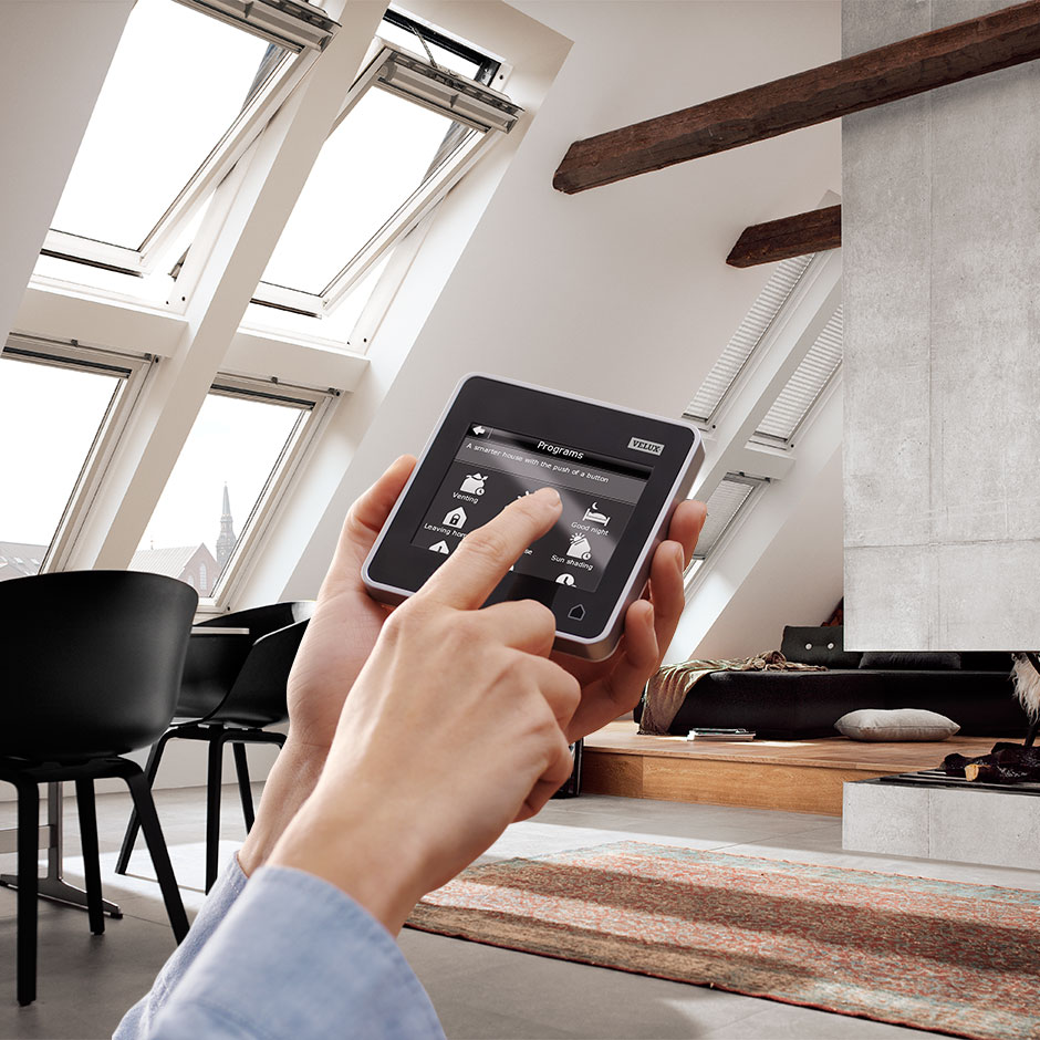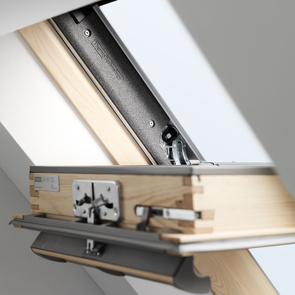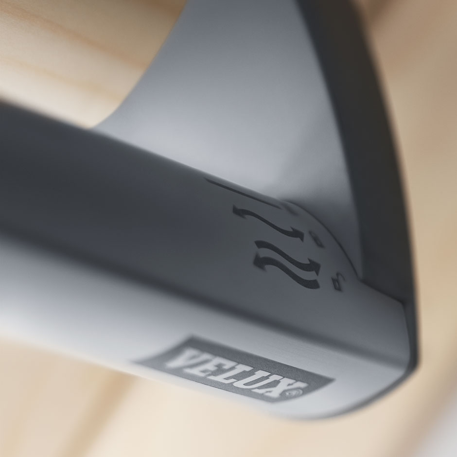 Top-operated roof window with easy opening. The original VELUX roof window, which set new, visionary standards for quality and operation. The convenient top operation not only makes it easy to open the window with a single-handed tug at the elegant control bar, it also offers the opportunity to place furniture beneath the window. A unique ventilation flap is cleverly integrated in the control bar.