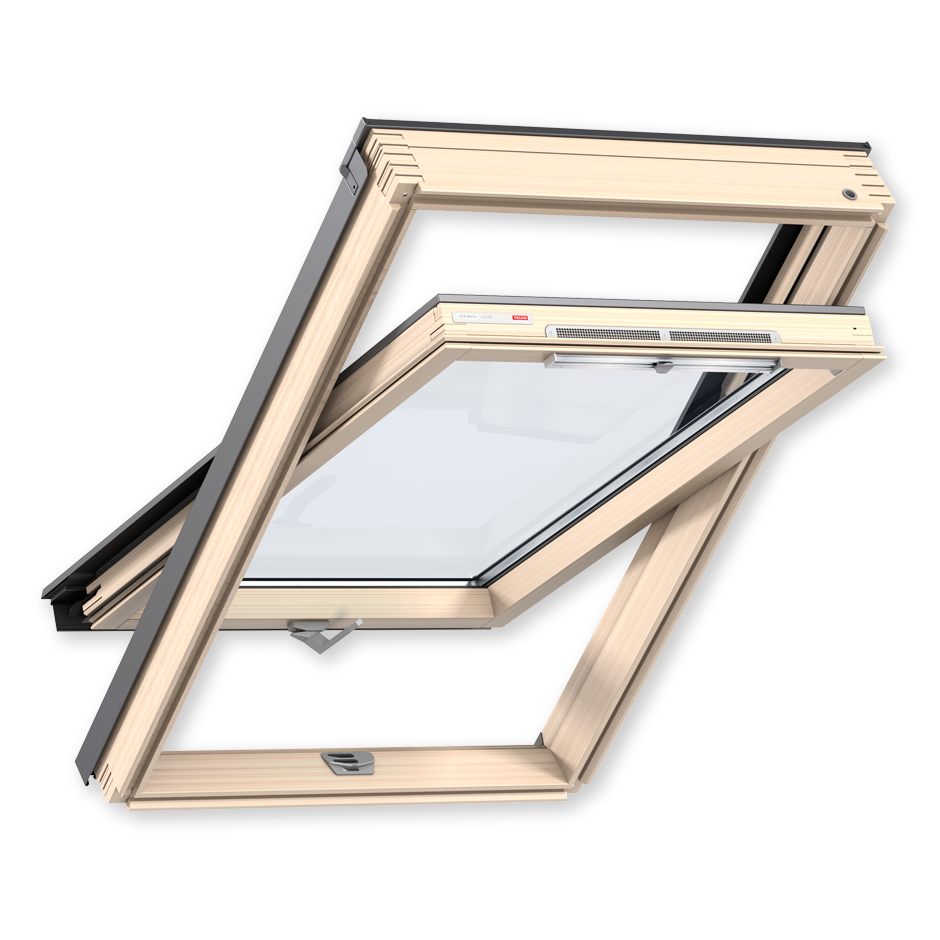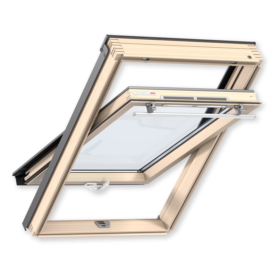VELUX invented top operated roof windows. It has two major advantages: The window is easy to operate even with furniture directly under it; the window is installed lower in the roof so you get a view standing up and sitting down.