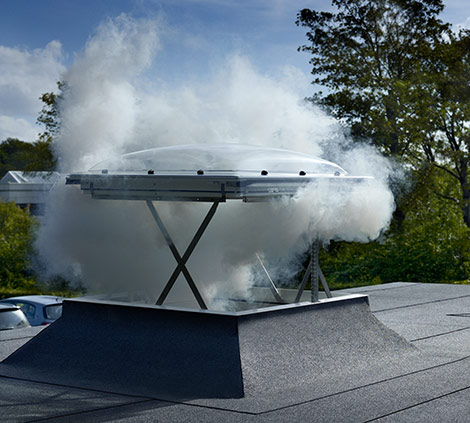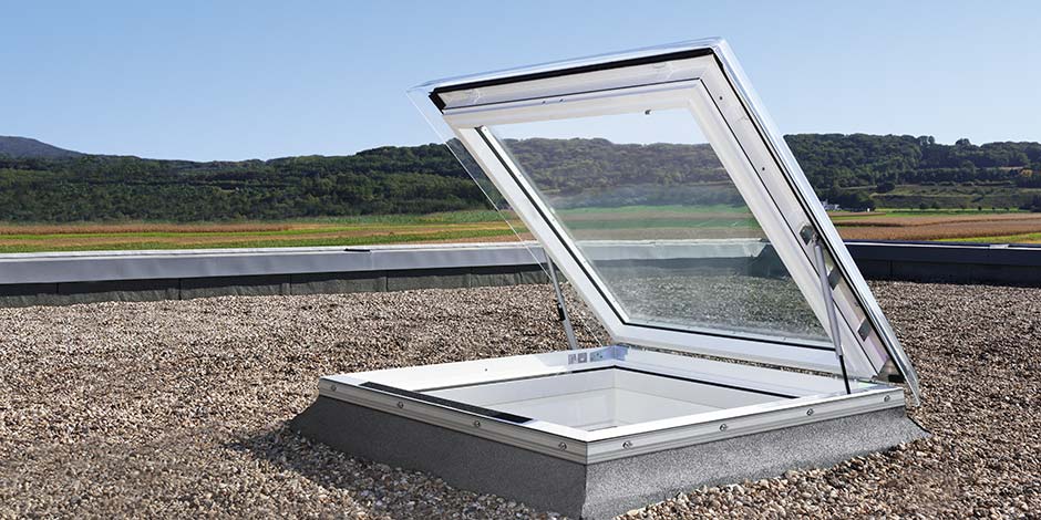 The VELUX smoke vent dome top opens all the way up to 50 cm to quickly release smoke and other harmful gasses in time-critical situations. Can also open up to approx. 15 cm for daily comfort ventilation.