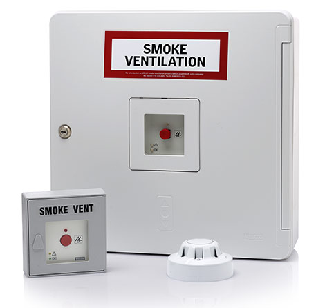 Opening system is connected to VELUX fire control system, which should be purchased separately. Choose from three different control systems that can control varying numbers of smoke vent windows and offer a smoke detector addition.