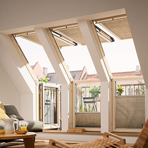 Complete your VELUX roof window with a VELUX blind. VELUX blinds offer effective sun screening and heat protection to suit every need. Choose among exterior awning blinds or a range of interior blinds.
