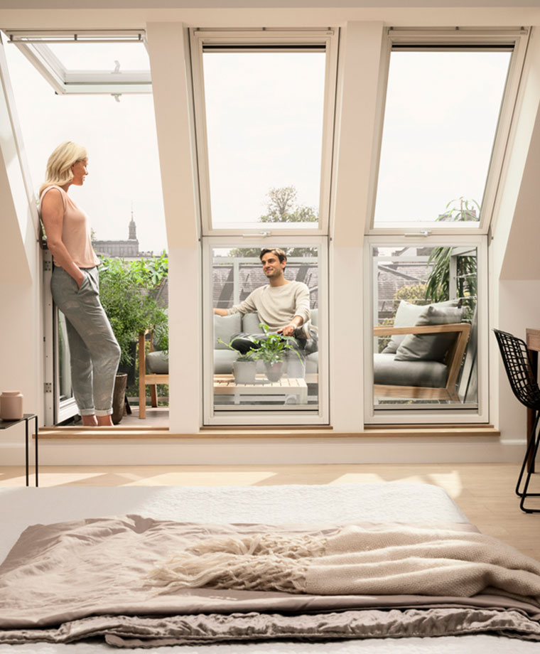 Do you have an outdoor space that you’d like to use, but can’t because of a sloped roof? A VELUX Roof Terrace gives you the best of both worlds by letting you access roof areas when open and allowing lots of daylight in when closed.