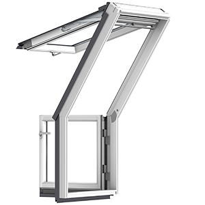 Open the upper section of your roof terrace window just as you would a bottom operated roof window for natural ventilation. Or open both sections to create a doorway to your roof terrace. Available with left or right opening lower section