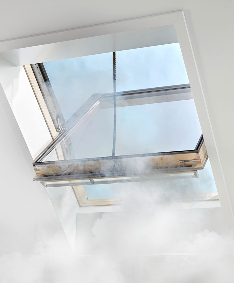 • VELUX smoke ventilation solutions are effective in all roof window applications, providing great flexibility in positioning the window on the roof