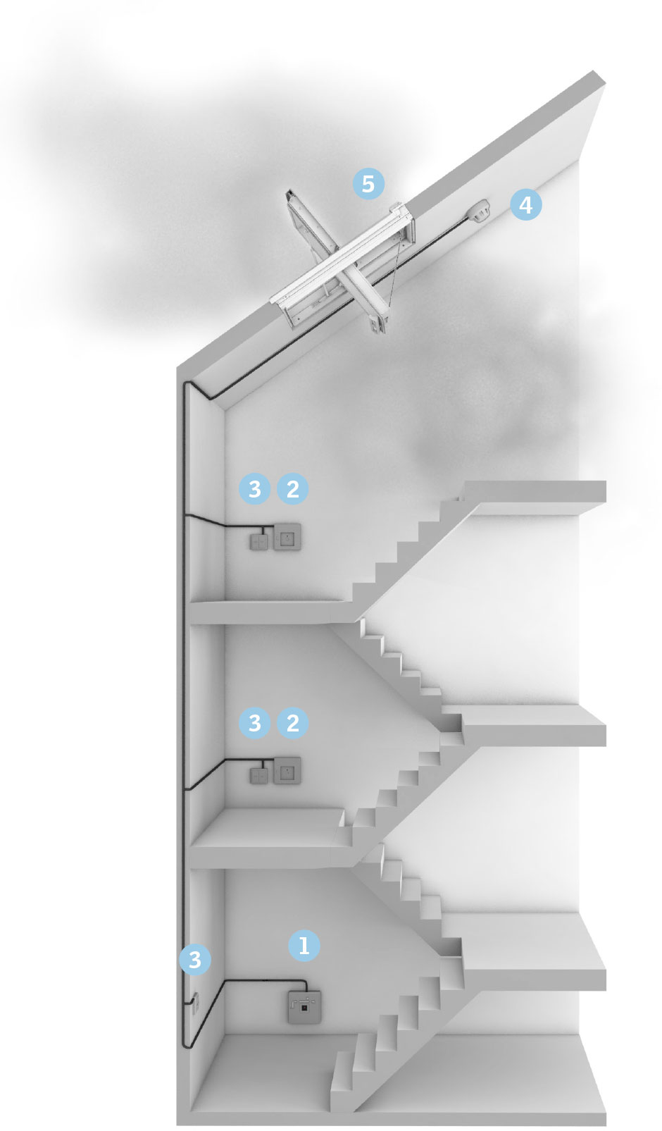 • The VELUX smoke ventilation system is a very flexible and cost efficient solution suited for a variety of applications, ranging from staircases in apartment buildings to large commercial buildings
