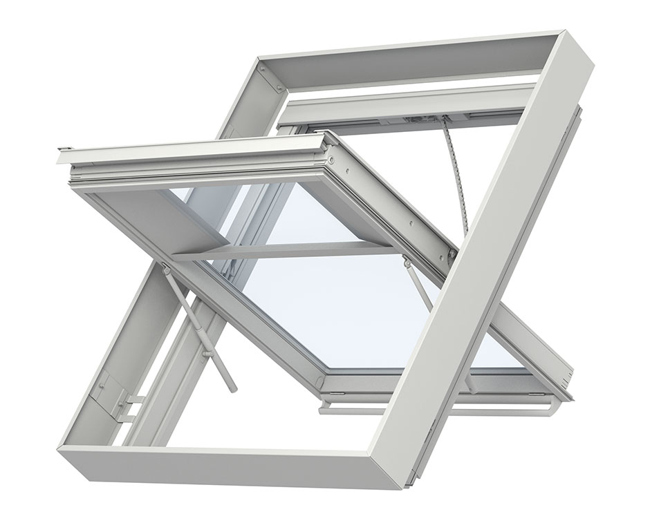 • For a quick and easy installation, the compact smoke ventilation operator has been pre-mounted on the sash of the roof window, making it invisible when the window is closed