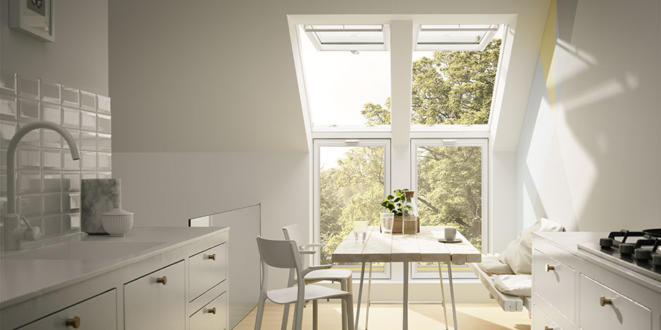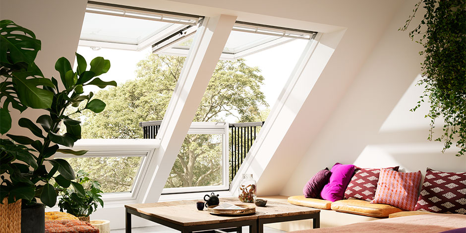 VELUX CABRIO® balcony windows can dramatically change a room. They’re the fastest way to add natural light, ventilation and the feeling of openness to your under roof spaces. The impact in terms of daylight and fresh air, not to mention the view, is stunning.