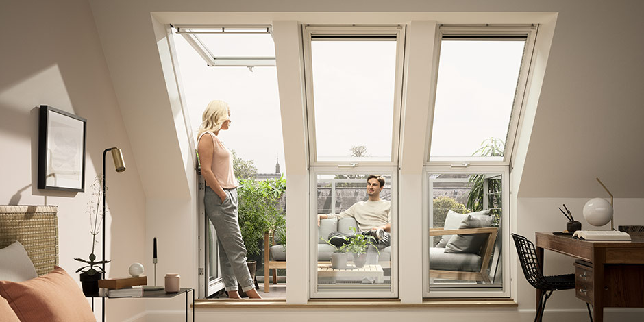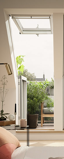Window or door – the choice is yours Open the upper section of your roof terrace window just as you would a bottom operated roof window for natural ventilation. Or open both sections to create a doorway to your roof terrace. Available with left or right opening lower section.