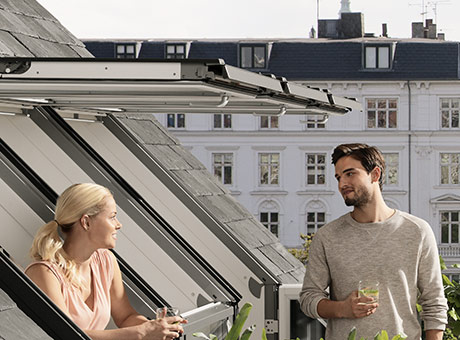 Find your place in the sun VELUX roof terrace Do you have an outdoor space that you’d like to use, but can’t because of a sloped roof? A VELUX Roof Terrace gives you the best of both worlds by letting you access roof areas when open and allowing lots of daylight in when closed.