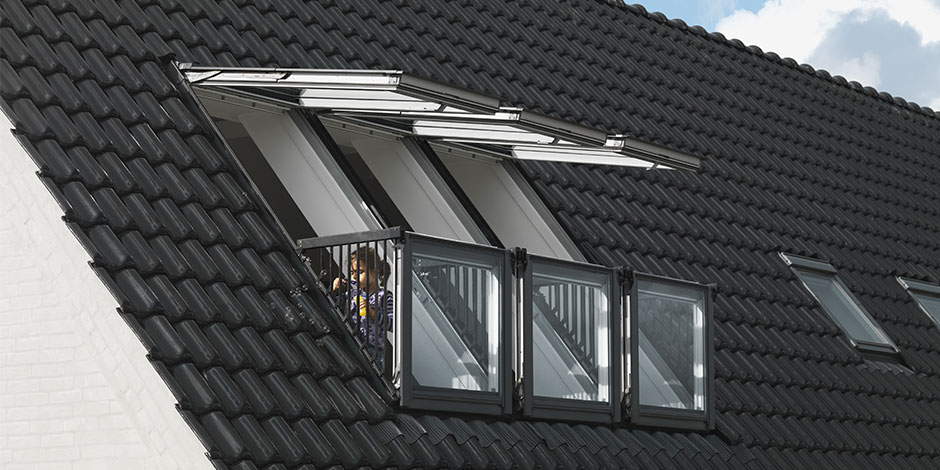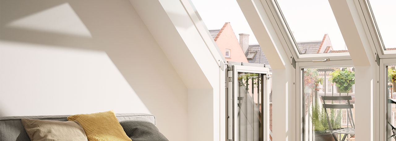 VELUX CABRIO® balcony VELUX CABRIO® balcony opens in seconds to give your loft space a place in the sun. The innovative balcony adds air, light and a great view to your home. For added convenience, the VELUX CABRIO® balcony fits flush with the roof when closed. Read more