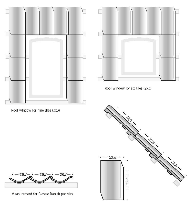 Sizes and roofing materialsThe new classic roof window GVR comes with separate flashing EDW to match roofs tiled with Classic Danish pantiles. The specially designed flashing EDW fits the classic tile type perfectly at the sides, the top and the bottom.