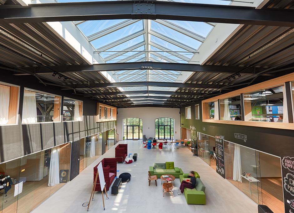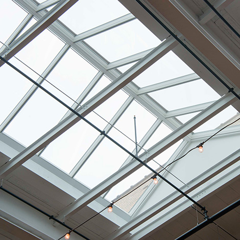 Having served as a railway depot since the beginning of the 1900, the beautiful historical buildings in Thalkirchen, just south of Munich, Germany, had all the right features to become an inspiring hot spot for creative companies. The buildings’ elongated and circular shapes made the installation of four VELUX Modular Skylight solutions a powerful architectural measure to ensure plenty of daylight and ventilation to common areas as well as individual rooms and offices.