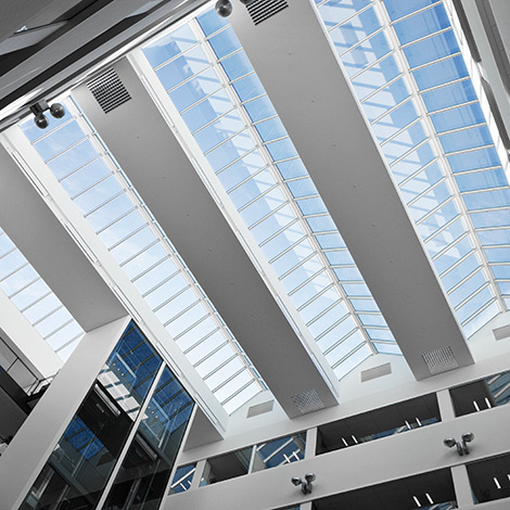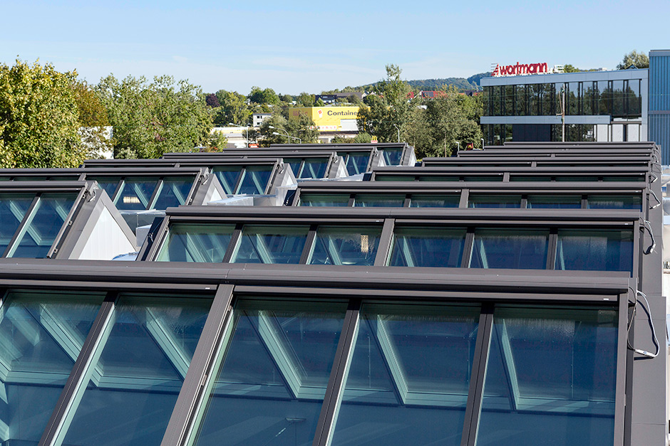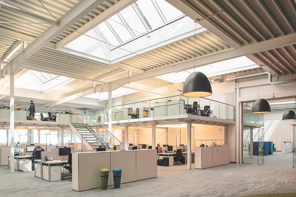 An old warehouse proved to be the perfect basis for a unique, new office building at the Wortmann Headquarter in Detmold, Germany. The industrial decor gave the new office space an attractive raw quality, which was softened by the daylight from 18 VELUX ridgelight installations, spread across the enormous roof.