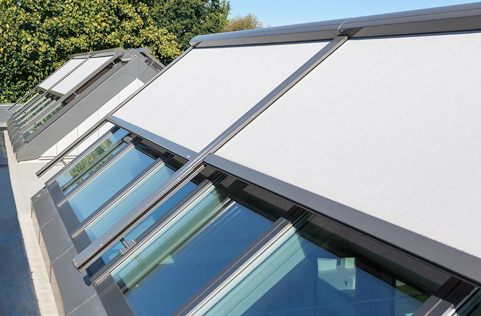 On the outside, VELUX installations were fitted with the Topfix VMS awning blind system from Renson. Topfix VMS is specifically developed to fit VELUX Modular Skylights and protects the interior against excessive solar heating.