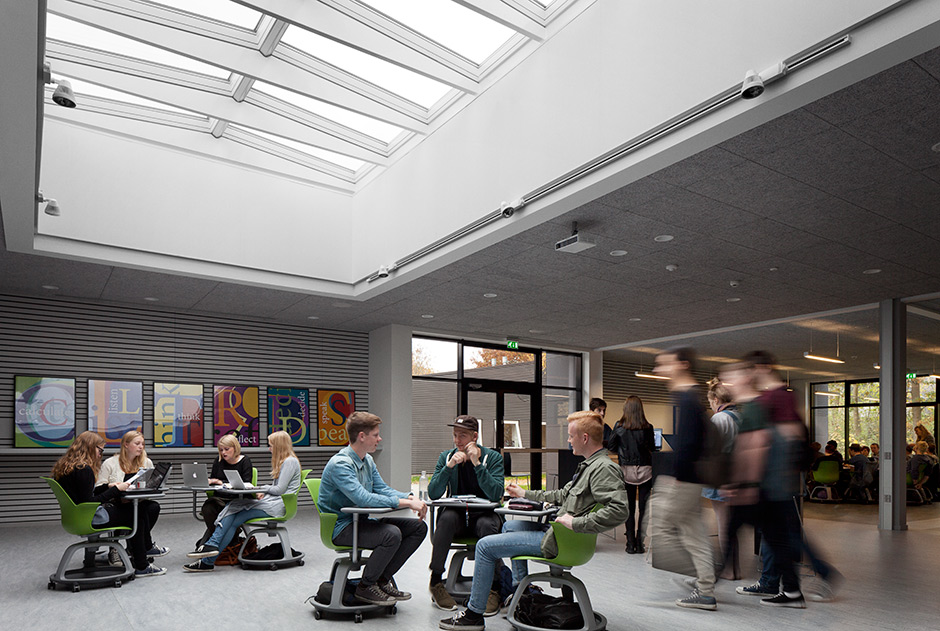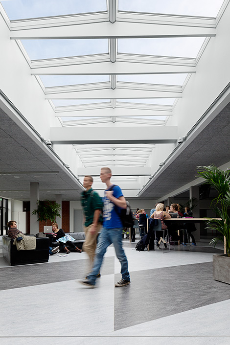 He is pleased with the solutions that are now in place, including the new VELUX Modular Skylights system. “They’ve been installed in common areas, where they create a fantastic atmosphere. The light cheers you up while you’re walking to wherever you’re going. It puts you in a good mood”, says Christian Blands.