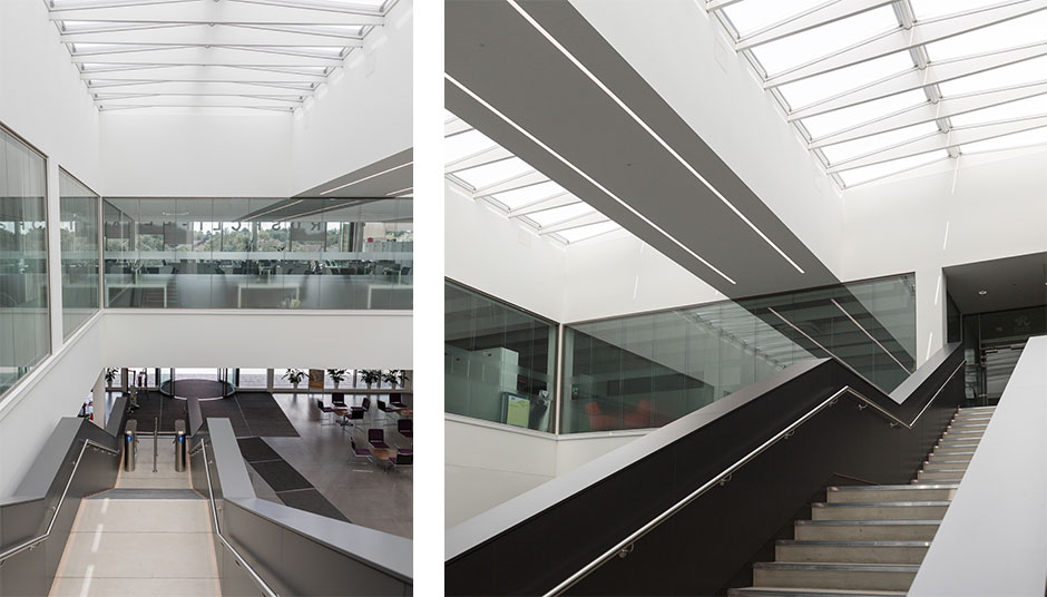 VELUX Modular Skylights’ prefabricated modular flashing and integrated insulation ensured a 100% waterproof installation, and the slim, elegant design allowed them to blend seamlessly into other areas of the building too, including the modern office accommodation comprised in the new development.