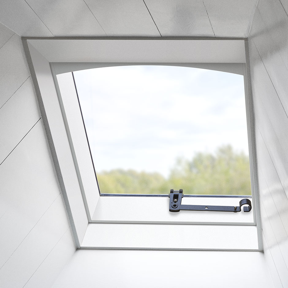 The new GVR roof window includes a series of novel features: a wooden internal frame and lining; external frame and flashing parts in zinc or copper that suit the roofing materials typically used in historical buildings; a stepped pane and robust hinges that complement the old cast iron windows. Furthermore, the window is insulated for use in inhabited rooms.