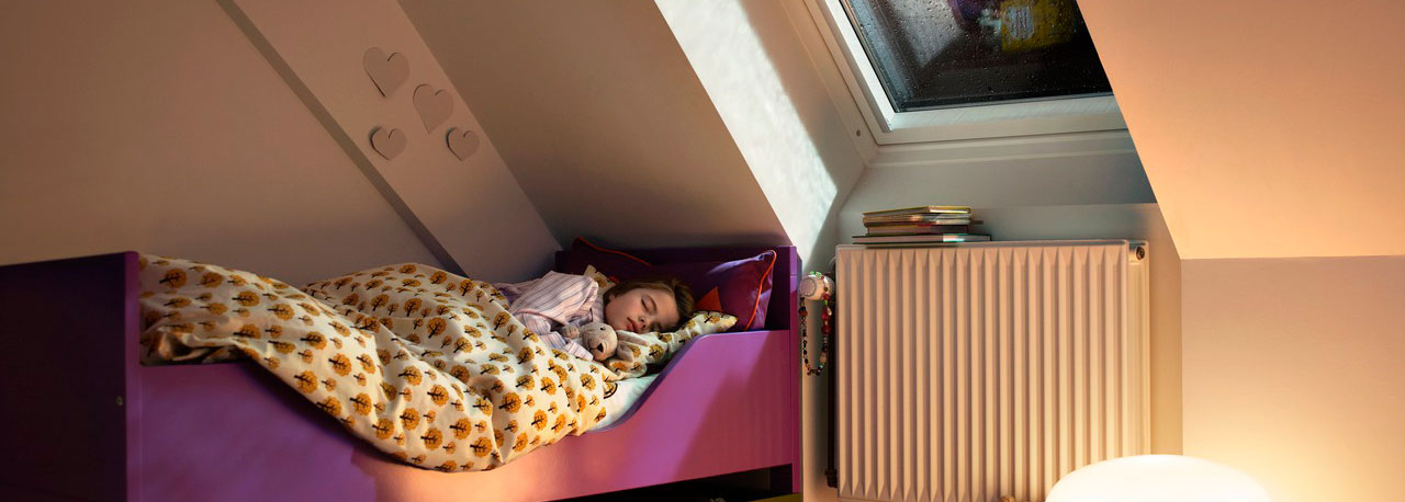 Turn your dream of a nice, peaceful sleep into reality. Choose super sound insulating VELUX roof windows if you live near a highway, an airport or any other loud area.