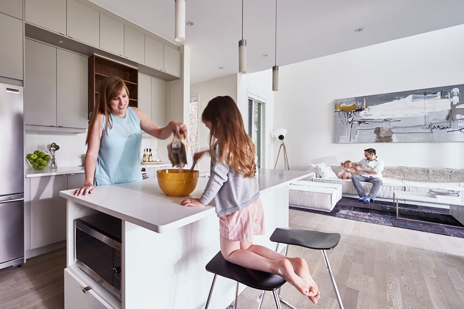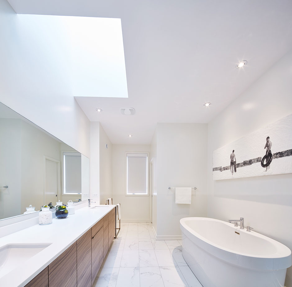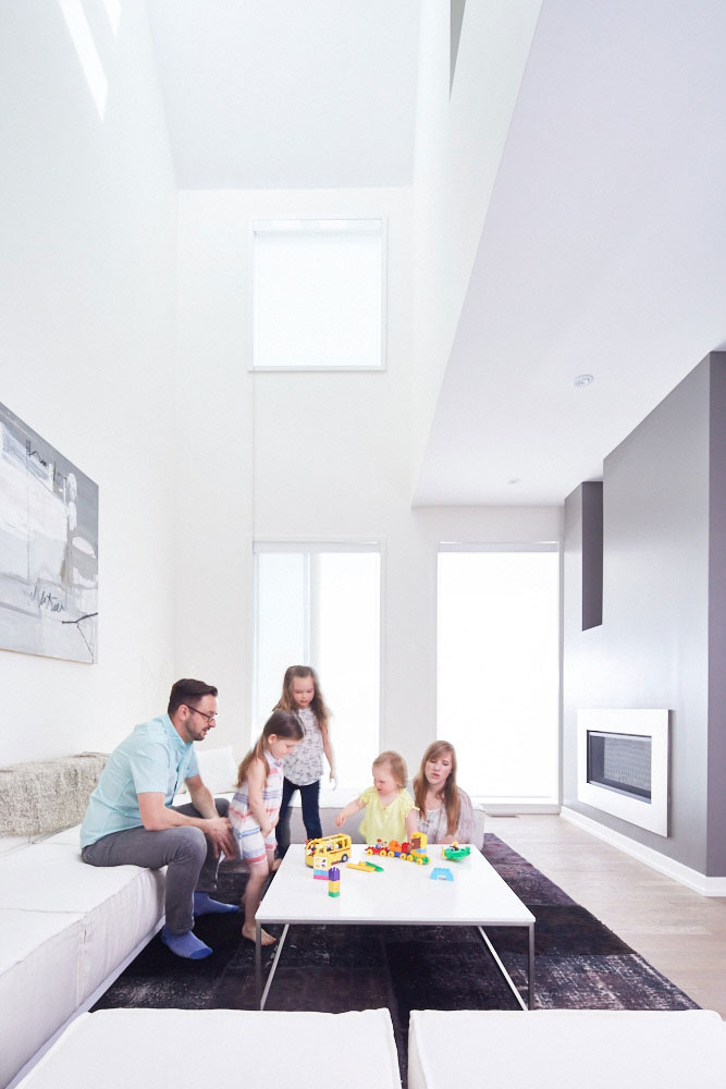 It is the strategic use of natural daylighting that defines the true character of the Great Gulf Active House where little to no artificial lighting is required during the day. The Danish design team modelled extensive computer visualizations to avoid insufficient levels of natural daylight in nearly every space of the home.