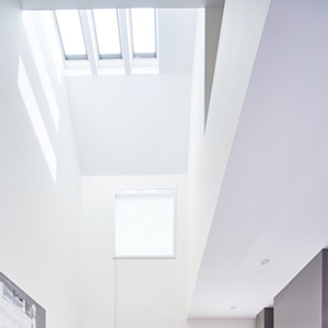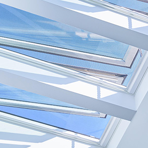 The fully programmable VELUX skylights are designed with an intuitively designed intelligent touchscreen remote control that can open and close the skylights as needed. In addition to maintaining their automatic and/or remote functioning for natural ventilation purposes, the skylights also have controls for an insect screen, and integrated rain sensors that automatically close them during inclement weather.