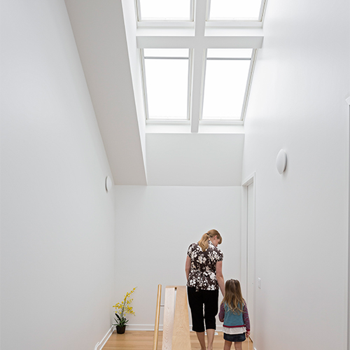 Designed for both deck and curb mount installations, the VELUX Electric "Fresh Air" skylight is the perfect daylighting solution for overhead applications. It allows for abundant natural light, and with the touch of a button, opens to let in fresh air. And if you forget to close it, a rain sensor will shut the skylight during inclement weather.