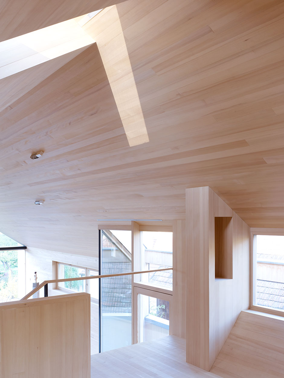 Designer Volker Dienst and architect Christoph Feldbacher came up with a solution: extending the upper floor of the narrow, historic building with ‘a house upon a house’. The plans focused on maximising natural light and preserving orchard views.