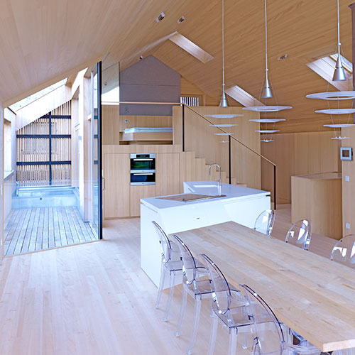 How do you build a new home on a site that is already occupied by a historic farmhouse and a fruit orchard? By constructing the new house on top of the old one. The result is a bright and unconventional Active House.